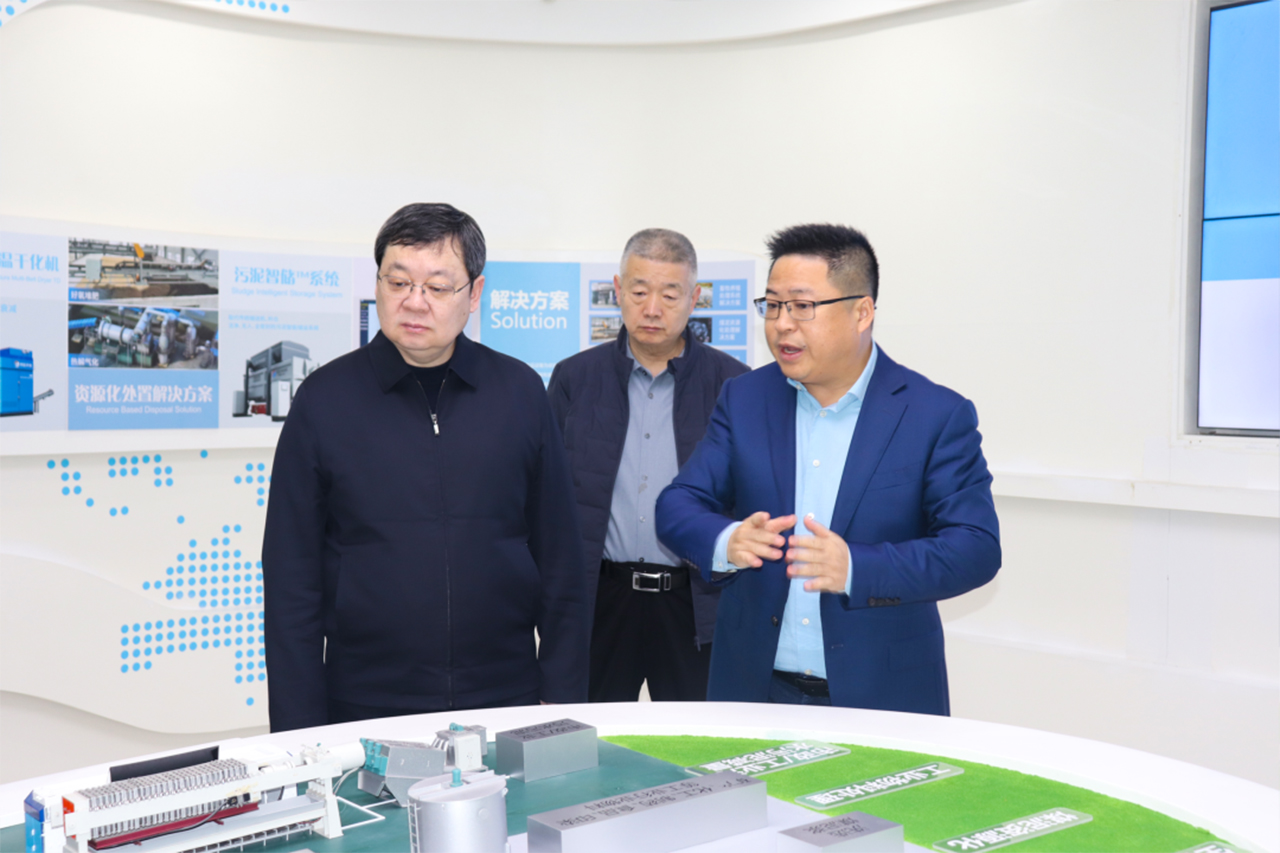 在总部的展厅里,张文标董事长对刘冰市长一行的来访调研表示热烈欢迎,并详细介绍了公司的创新成果转化及系统解决方案。作为资源化领域智能装备技术革新者,同臣装备在“一院两中心”研发平台的助力下,坚持自主研发创新,加快推进项目建设及产品的持续升级,深化行业及高校战略合作,积极响应国家“十五五“、”双碳”战略,为推动生态环境保护事业高质量发展贡献更多同臣力量。